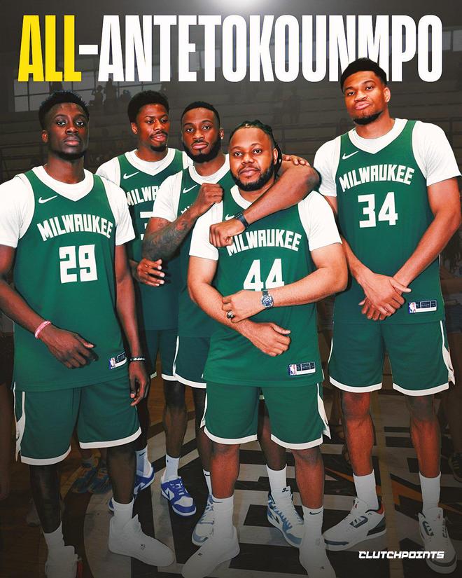 如今三位阿德托昆博兄弟已携手创造历史,若雄鹿队能将另外两位兄弟也纳入阵中,他们甚至能排出一套 “全阿德托昆博” 的首发阵容。